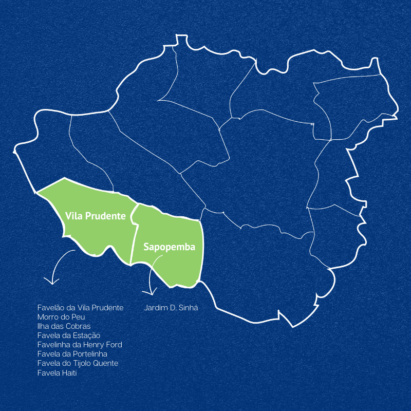 Somos um hub de iniciativas e soluções e amplificamos vozes das periferias e democratizamos oportunidades nas favelas e nas periferias da Vila Prudente e do Jardim Sinhá utilizando educação como ferramenta de transformação social por meio da Cultura, Esporte, Qualificação Profissional, Geração de Renda, Comunicação Comunitária, Revitalização de favelas e Empoderamento Feminino com Renda.